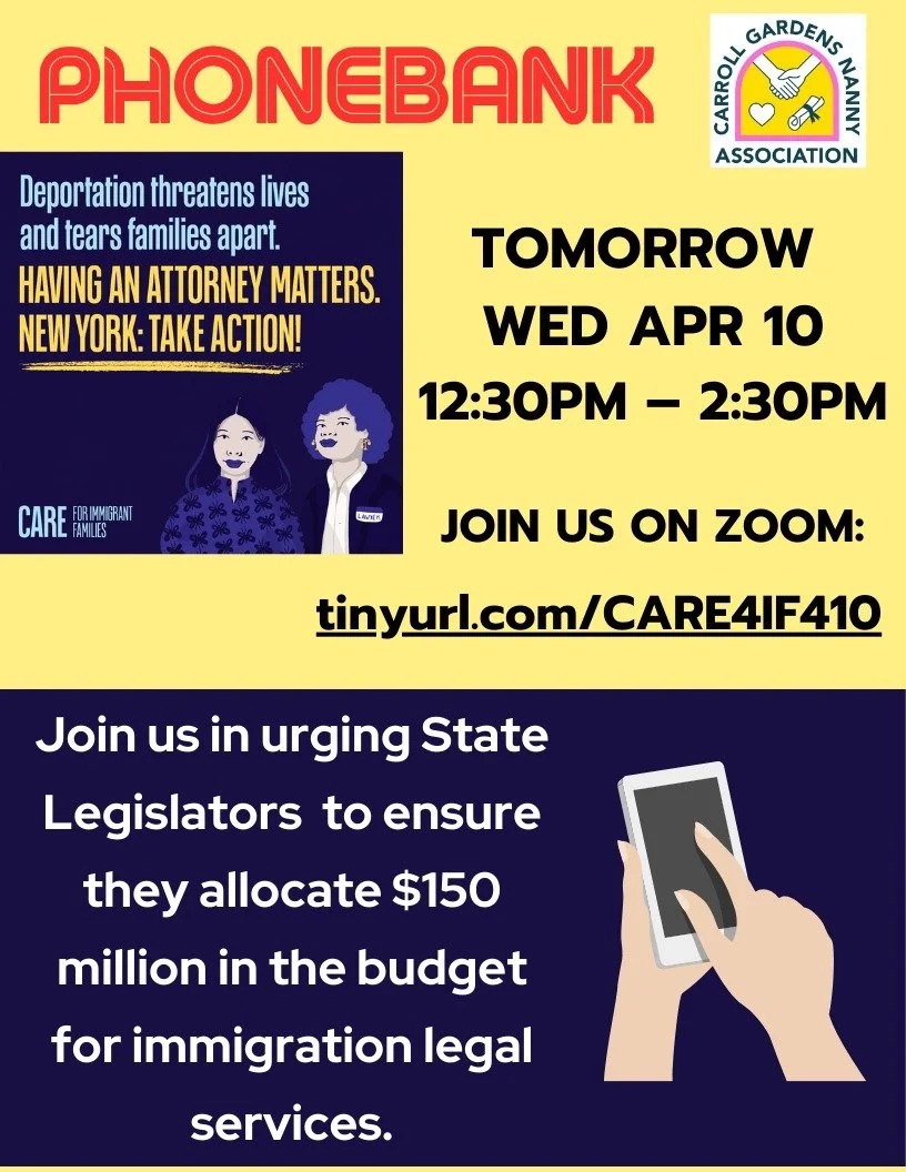 Phonebank for CARE for Immigrant Families Wednesday, April 10, 2024 12:30 PM 2:30 PM Google Calendar ICS