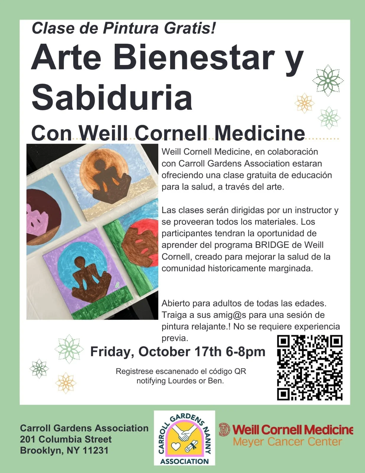 Acompáñanos a una clase gratuita de pintura en colaboración con Weill Cornell Medicine. Esta clase única de arte terapia está diseñada para promover el bienestar y la creatividad mientras aprendes sobre temas de salud importantes.
