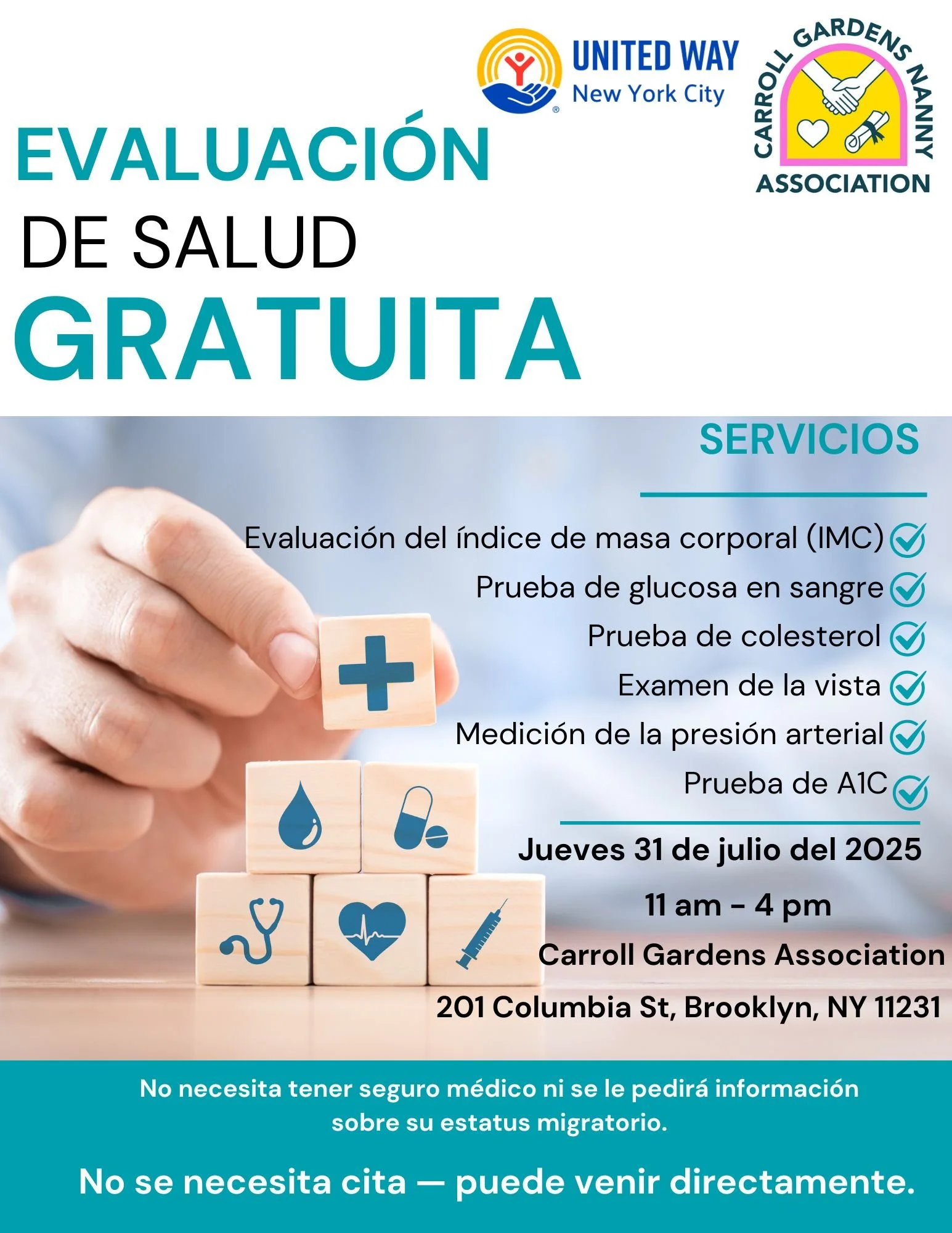Carroll Gardens Nanny Association, in collaboration with United Way of New York City, invites you to a Free Health Screening event open to all community members.