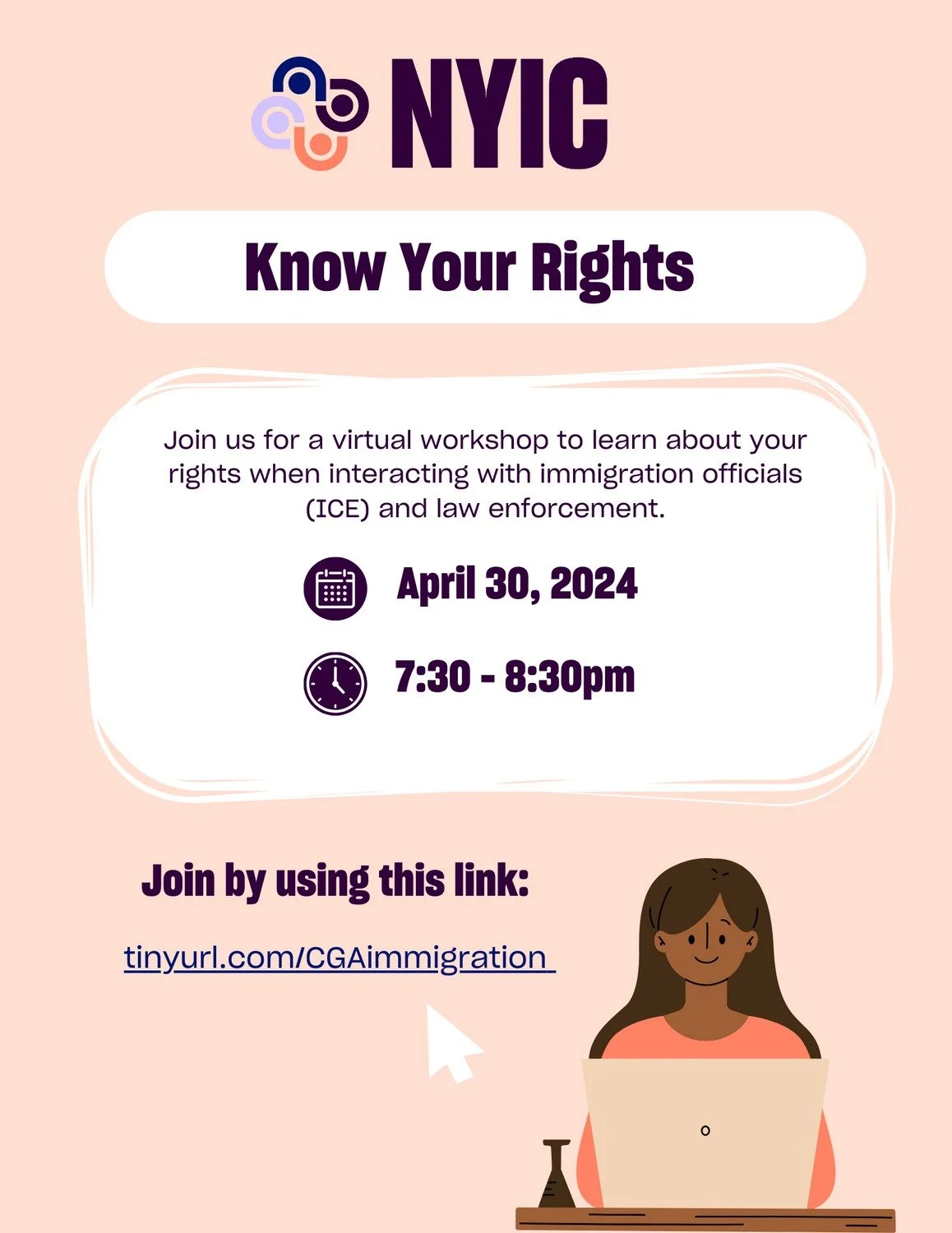Immigrant Know Your Rights Workshop Tuesday, April 30, 2024 7:30 PM 8:30 PM Google Calendar ICS Click Here to Join Directly